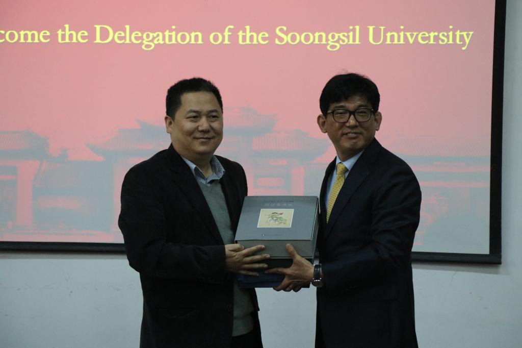 崇实大学人文大学副学长金正烈表示,金沙9001cc以诚为本首页和崇实大学都是历史悠久的百年名校,很高兴有机会访问河大。他希望能够在学生互派、教授互访、博物馆文物临展及学术交流等方面与金沙9001cc以诚为本首页达成合作协议,共同助力两校的进一步发展。同时,他也衷心地期待明年能够在首尔迎接金沙9001cc以诚为本首页代表团的来访。