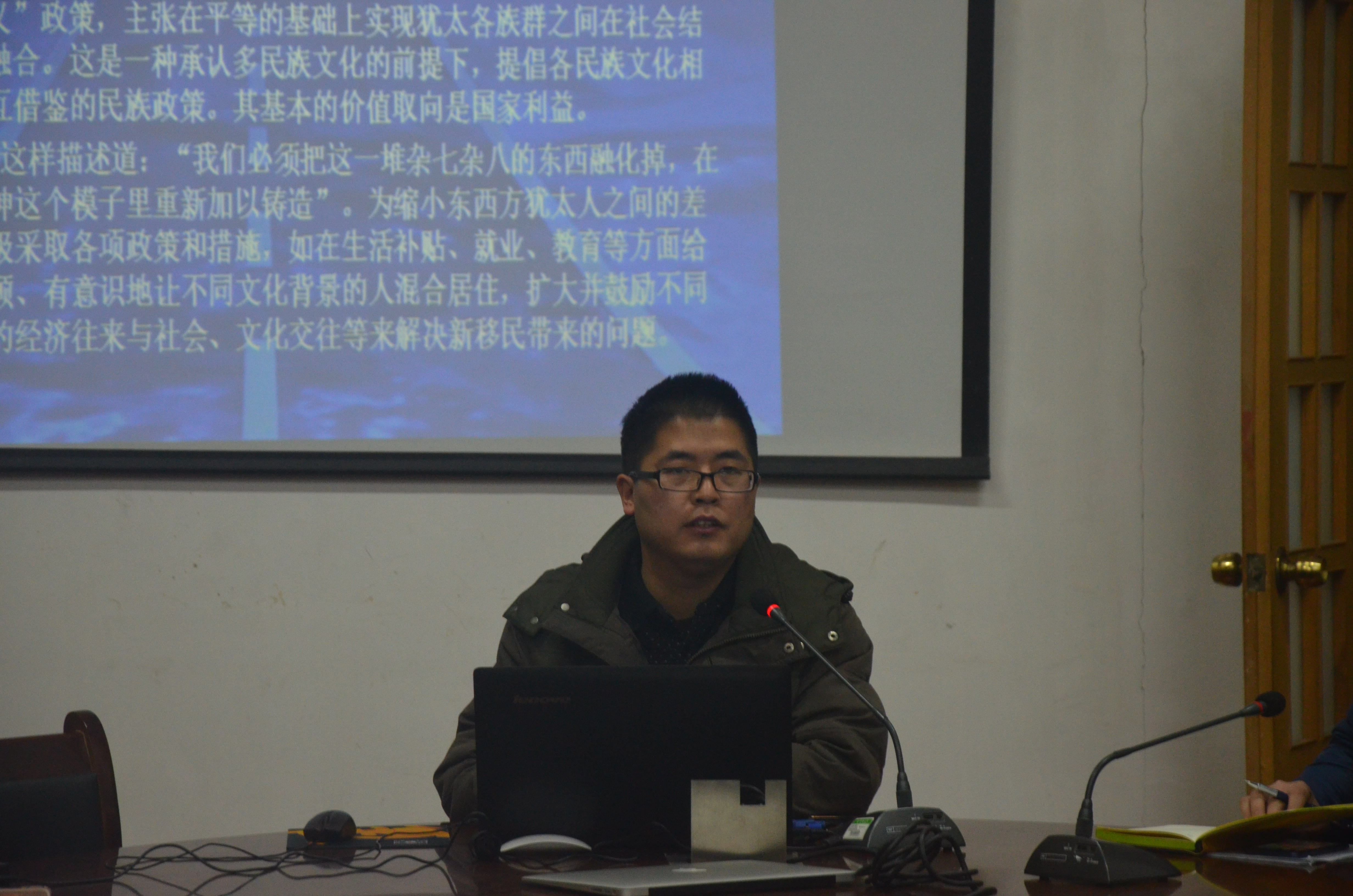 随后,胡老师介绍了埃塞俄比亚犹太人的历史和移民状况,包括社团历史演变、宗教和社会状况以及回归以色列的进程。胡老师认为,在埃塞俄比亚犹太人重归故土后,他们并没有获得完全平等的社会地位。经济上,埃塞俄比亚犹太人作为附庸者的角色,从事着社会最底层的工作;政治上,埃塞俄比亚犹太人政治活动空间较小、政治参与能力较低、政治影响力非常有限;宗教上,由于与主流犹太教存在较大差别,埃塞俄比亚犹太人的犹太信仰受到质疑,宗教活动受到限制和歧视,宗教荣誉也受到侵害。虽然以色列政府努力采取措施促进埃塞俄比亚犹太人移民更好地融入以色列社会,但由于传统上阿什肯纳兹犹太人社团的强势地位以及以色列社会存在的顽固的种族偏见,埃塞俄比亚犹太人在族群认同和国家认同方面仍然面临着深刻的矛盾与困境。