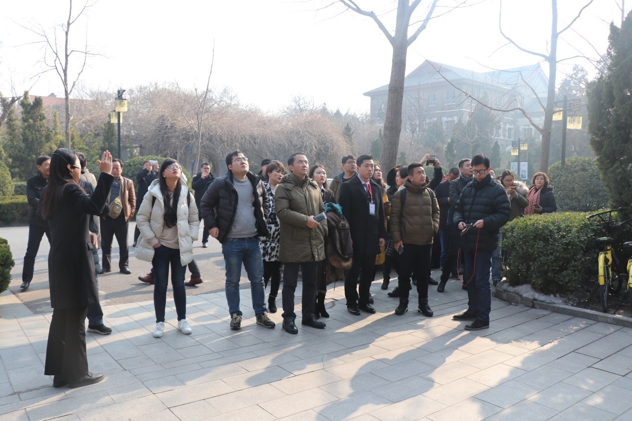 冬日暖阳,感受不一样的河大。学员们怀着好奇的心情,在用双眼欣赏明伦校区美景的同时,也用心聆听了独属于河大的故事。本次游览,选取的是河大的精品路线。进入标志性的河大南校门之后,以博雅路为中轴线,依次参观了留学欧美预备学校大门、小礼堂、博雅楼、大礼堂等河大近现代建筑群。导游部同学用高水平的语音表达能力为学员们讲述了一草一木、一砖一瓦背后的沧桑岁月,学员们对这座百年学府积淀的文化底蕴纷纷表示赞叹。对于学员们提出的问题,导游一一耐心回应,在交谈中更加凸显出河大的特色。尽管当日天气还较为寒冷,但大家心里暖洋洋的。冬日暖阳游河大,给诸位学员留下了深刻的印象,大家意犹未尽,期待有机会再次赏河大。