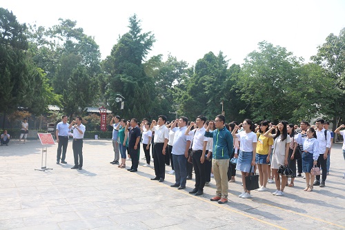 6月8日上午,金沙9001cc以诚为本首页党委组织毕业生党员赴兰考焦裕禄纪念园开展党员教育活动,新入党的教职工党员、部分在校生党员代表以及全体辅导员一同参与活动。