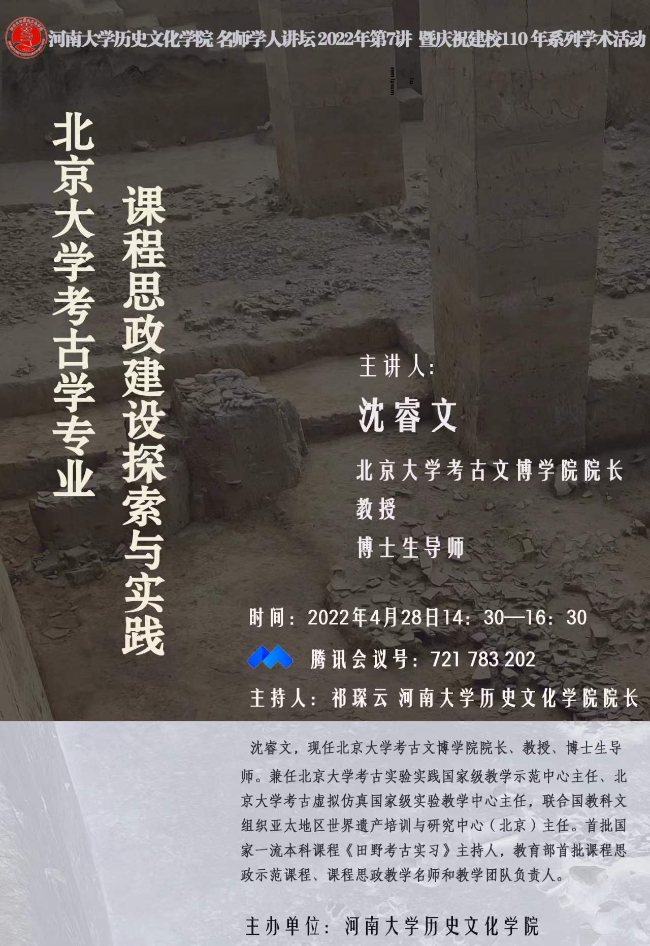 【讲座通知】沈睿文:北京大学考古学专业课程思政建设探索与实践