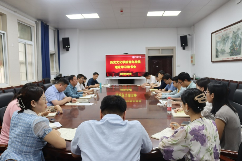 与会青年党员从学习体会、提升学院毕业生就业能力和推动学院高质量发展等方面展开座谈交流。研究生辅导员张俊辉表示,青年党员要发扬奋斗精神,认真做好学生日常教育管理、特殊群体就业帮扶等工作,立足工作岗位履职尽责,为学院事业发展贡献力量。考古文博系教师顾纯光认为,作为新入职教师,在实际教学中要积极做好理论同实践相结合,充分发挥专业优势,以良好的育人成效传承好、弘扬好中华优秀传统文化。中国古代史教研室教师王博凯谈到,通过理论学习,理想信念更加坚定,底线思维更加牢固,将努力在师德师风、学术道德等方面带好头、做表率,以务实严谨的作风做好各项工作。考古文博系教师谢佳芮提出,当代青年恰逢盛世当不负盛世,要树立崇高的理想信念,扣好人生的第一粒扣子,始终怀有锲而不舍的奋斗精神,做善于发挥专长、勇于探索实践的实干家。世界史系教师高阳表示,课堂是育人工作的主战场,我们要在学习党的创新理论中汲取力量,有效推动课程思政育人工作,切实提高人才培养质量。
