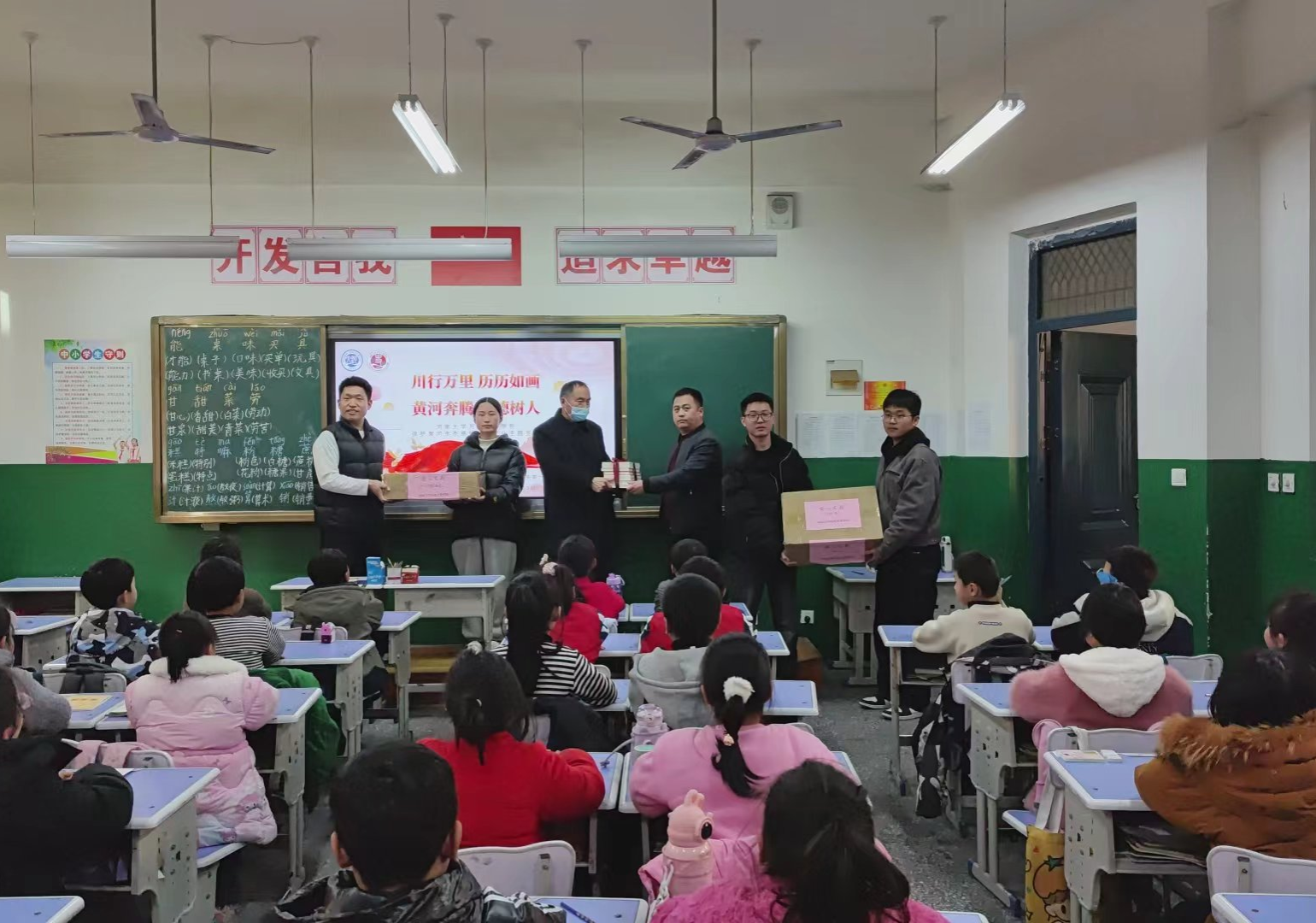 黄河故事久弥新,历史命脉持延今。师生们来到活动最后一站封丘县荆隆宫乡新区启航小学,围绕教育引导师生爱护母亲河,营造尊法守法、爱河护河的浓厚氛围开展“普法进校园宣讲,讲好黄河历史小课堂”活动并为小学捐赠爱心文具150套。师生志愿者分为六组进入二年级、四年级课堂,给小朋友们讲解黄河保护法重点条文、汛期如何保护自身安全、生态环境保护的重要意义,并为同学们介绍了金沙9001cc以诚为本首页。期间,学院师生志愿者与小朋友们互动积极,有问有答,小朋友们表示要从小做起,好好学习文化知识,以实际行动保护母亲河。
