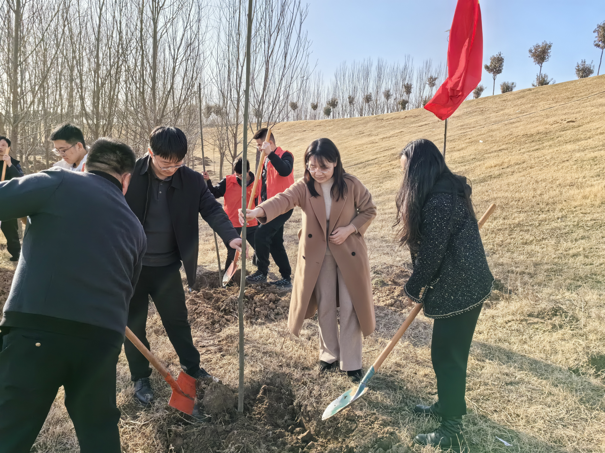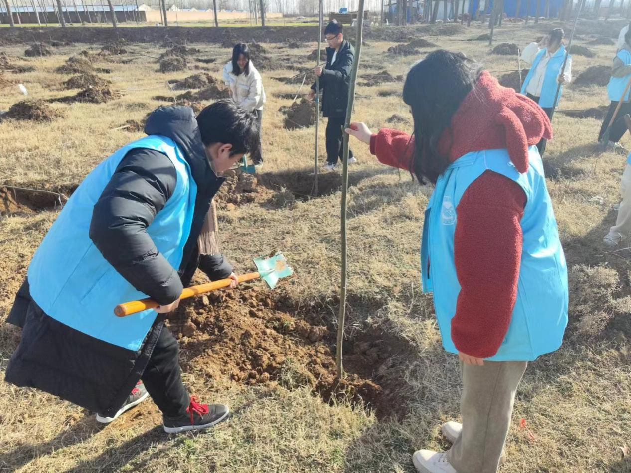 植树造林添春意,共保环境护自然。为倡导人人爱绿植绿护绿的文明风尚,活动第二站来到黄河大堤陈桥段,同学们着志愿者服装,手套铁锹一应俱全,三人一组分工有序,热情高涨地进行植树活动,固苗、填土、固土的动作一气呵成,认真的表情、规范的操作、娴熟的动作,无不洋溢着同学们辛勤植树的快乐,极大地增强了同学们的环境保护意识和志愿服务意识。