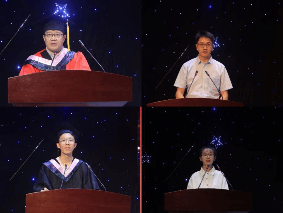 2024届历史学专业田管宁作为毕业生代表进行发言,他回忆了四年来的种种收获,向老师给予的的关怀和帮助表达了感谢,表示会将“明德新民,止于至善”的校训铭记于心,在人生的新征程中乘风破浪,砥砺前行。在校生代表2021级考古学专业张子轩回忆了与学长学姐共度的四年愉快时光,感谢他们在学习和生活中给予的关心与支持,并祝愿各位学长学姐前路坦荡,所得皆所愿。
