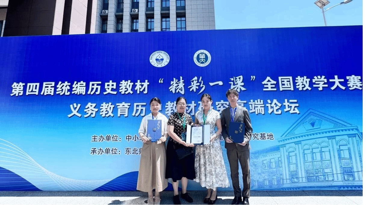 近日,由中小学(中职)历史国家教材建设重点研究基地主办,东北师范大学金沙9001cc以诚为本首页承办的统编历史教材“精彩一课”全国教学大赛暨历史教材研究高端论坛在东北师范大学举办。金沙9001cc以诚为本首页组成由副院长闵祥鹏领队,黄俊华、谢佳芮为指导教师,2021级本科生朱文轩、刘家辉为参赛选手的团队代表学校前往参赛。经过两天的激烈角逐,学生朱文轩、刘家辉分获一等奖、三等奖,黄俊华、谢佳芮两位老师获“优秀指导教师”称号。