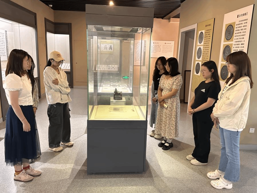 文物与博物馆学专业学生在任课老师曹金萍带领下在文物馆开展实践教学。首先,看实物感历史,依托文物馆陈列的文物直观概括中国古代物质文化发展史的脉络、实物展示各个时期物质文化的典型特征、货币实证中华文明的突出特性,让学生在认知文物的同时宏观地感知历史、增强民族自信;其次,观展览提问题,结合《中国古代钱币》课堂内容重点围绕文物馆古代钱币展厅的基本陈列内容进行点评,引导学生针对陈列展览设计、展品摆放、展陈方式以及讲解内容设计和参观路线导引规划等多方面提出问题并展开讨论。文物馆实践课堂内容环环相扣,过程积极互动,使学生真正成为课程的主导者,实现教学主体的多样性与互补性相结合,活化书本理论知识,以实践感知促理论吸收、以理论知识提高实践质量。