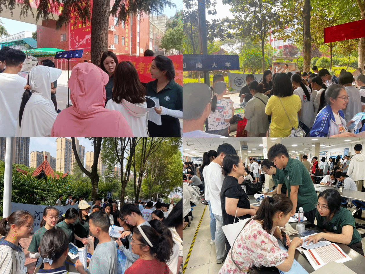 为吸引更多优质生源报考金沙官网,进一步提升2024年本科招生工作质量,2024年6月25日至6月28日,由金沙9001cc以诚为本首页党委书记张占党、副书记周文凯带队,组织学院部分教师代表及学生志愿者等11人,分三组赴南阳市宛城区、卧龙区、方城县、社旗县、唐河县、桐柏县和新野县开展金沙9001cc以诚为本首页2024年本科招生宣传工作。