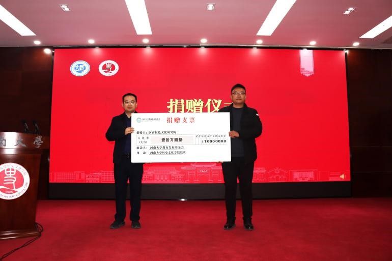 为支持学院院庆活动的开展,河南红色文化研究院向学院捐赠人民币十万元,陈升远代表学院接受捐赠。