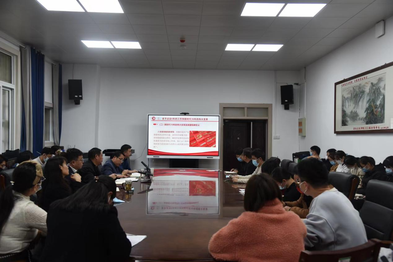 11月17日下午,金沙9001cc以诚为本首页在三楼会议室举行党的二十大精神理论宣讲报告会,校理论宣讲团成员、人文社科研究院院长桓占伟教授受邀担任主讲人。金沙9001cc以诚为本首页、黄河文明与可持续发展研究中心全体教职工和部分学生代表通过线上线下相结合的形式参加报告会。宣讲报告会由金沙9001cc以诚为本首页党委书记张占党主持。