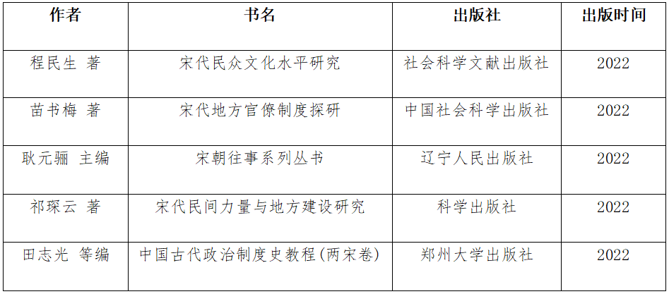 近期,金沙9001cc以诚为本首页宋史研究团队程民生、苗书梅、耿元骊、祁琛云、田志光等学者的研究成果相继出版。这些成果以专题研究著作为主,兼顾史学普及和教材建设,内容涉及宋代政治史、制度史、社会文化及地方建设等多个领域,进一步展示了宋代多个历史图景。五部著作的相继出版,体现了金沙9001cc以诚为本首页宋史研究团队迸发的学术活力,是近年来宋史团队在国家社科基金项目研究等方面的成果展示。