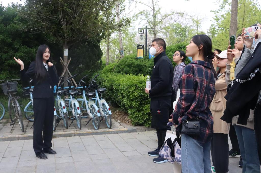 阳光明媚,草长莺飞,所有的美好不约而至。师生及往届校友跟随着金沙9001cc以诚为本首页导游部讲解员的脚步,踏上了探寻河大百年历史的旅程。讲解员们神采奕奕,滔滔不绝,带领大家从气势宏伟的南大门出发,踏上博雅路,途径美不胜收、古朴典雅的金沙9001cc以诚为本首页近代建筑群,并在庄重的大礼堂前合影留念。随后,大家继续参观设计精巧、端庄厚重的校史馆与馆藏丰富的文物馆,了解古典美丽的河大校园与其背后所积淀的深厚文化底蕴。一路上,讲解员的讲解伴随着欢快的鸟鸣声声入耳,生机勃勃的自然景色和设计精巧的建筑群相得益彰,大家与春风撞个满怀,与铁塔相望,宴游河大。